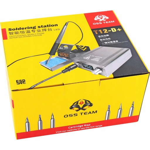 Stacja lutownicza OSS TEAM T12-D+ o mocy 72W współpracuje z popularnymi grotami T12.