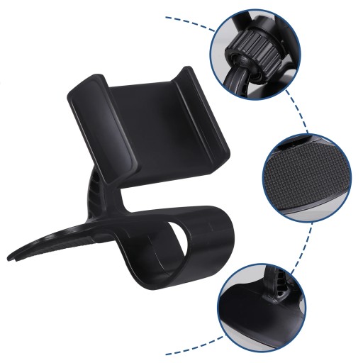 Uchwyt na telefon można podłączyć do deski rozdzielczej lub zakrzywionej powierzchni i stałego gniazda urządzenia elektrycznego, aby zapobiec ich zarysowaniu i upuszczeniu.