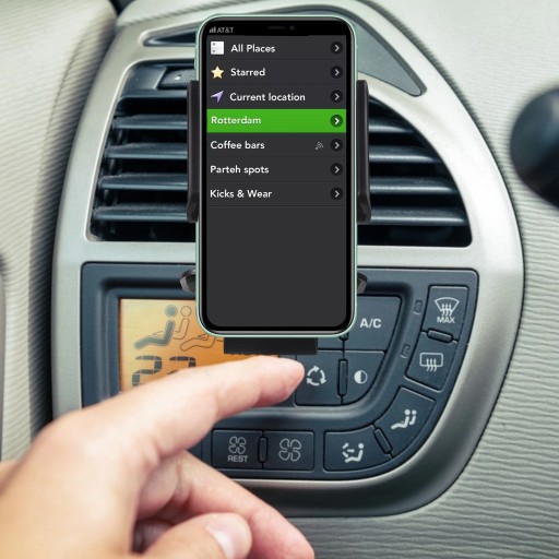 Uchwyt na telefon komórkowy zapewnia dostęp do innych funkcji podczas oglądania i jazdy.