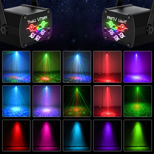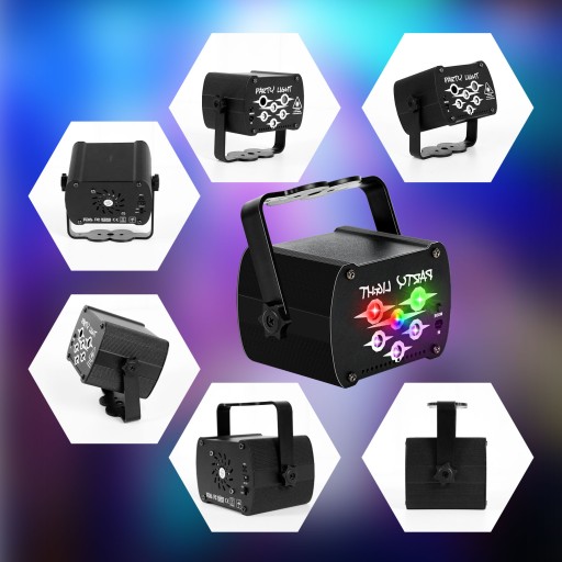 LED Party Lights wyposażone w ponad 60 różnych wzorów. Kombinacje świateł (LED czerwony, LED zielony, LED niebieski, LED czerwono-zielono-niebieski) i fiolet UV, siedem kolorów tła (czerwony, czerwono-niebieski, czerwono-zielony, czerwono-zielono-niebieski, zielony, zielono-niebieski, niebieski). Światła i tło można dowolnie włączać i wyłączać.