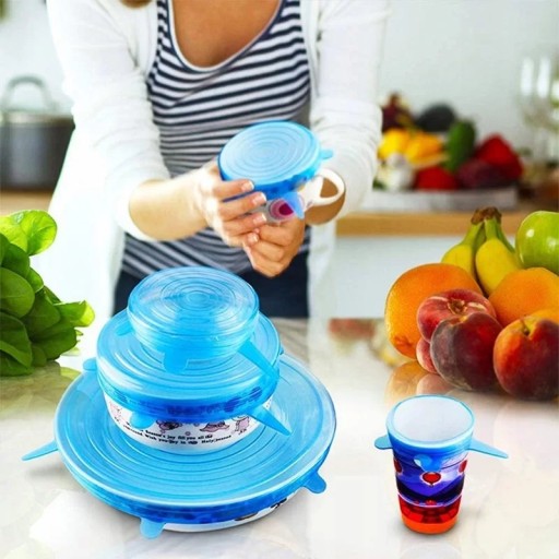 - ✔️ Zestaw silikonowych pokrywek to świetny sposób na to, aby przechowywana żywność dłużej utrzymywała świeżość oraz walory smakowe.