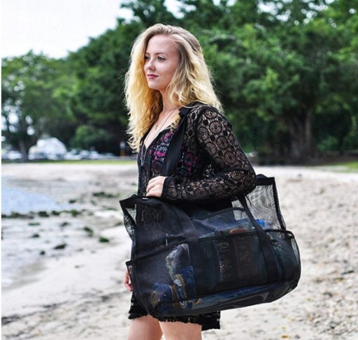 Składana siatkowa torba: Torba plażowa umożliwia łatwe przepuszczanie wody lub piasku podczas zabawy, pływania lub kąpieli. Uwaga: ta torba plażowa może pomieścić 10 kg
