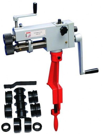 Żłobiarka SKM 200 pozwoli na wykonanie różnych połączeń rurowych. Jest urządzeniem wszechstronnym dzięki 6 różnym walcom do zwijania obrzeży i wykonywania rowków. Została wyposażona w obrotowy korpus oraz uchwyt do stołu. Żłobiarka firmy Holzmann została wykonana z wysokiej jakości materiałów, dzięki czemu odznacza się wytrzymałością na ciężką pracę oraz odpornością na uszkodzenia mechaniczne.