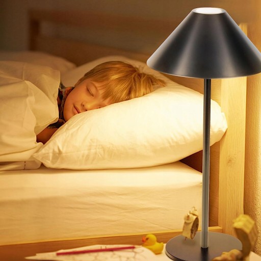 Czarny abażur tworzy stylową i ciepłą atmosferę w sypialni. Dotykając przycisków na panelu sterowania, można łatwo włączać i wyłączać lampę. Długie naciśnięcie przycisku pozwala dowolnie regulować jasność lampy biurkowej w zakresie od 5% do 100%.