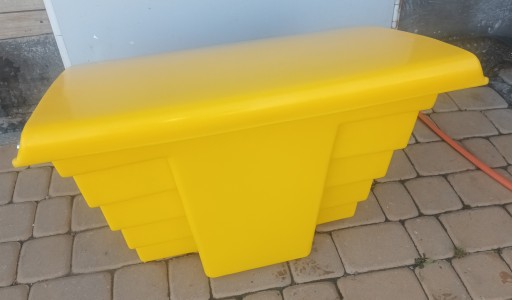 Pojemniki wykonane są z wysokiej jakości polietylenu przez co są odporne na szkodliwe działanie warunków atmosferycznych – nie zmieniają koloru pod wpływem promieni słonecznych, nie korodują i nie pękają. Można przechowywać w nich inne środki do posypywania ulic i chodników. Dzięki swojej trwałości mogą służyć przez wiele lat. Wyjątkowo elastyczne wykonanie pojemnika sprawia, że można go umieścić w dowolnym miejscu.