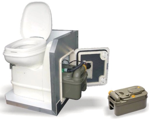 - Włącza się automatycznie po otwarciu zasuwy toaletowej i wytwarza podciśnienie w zbiorniku na nieczystości