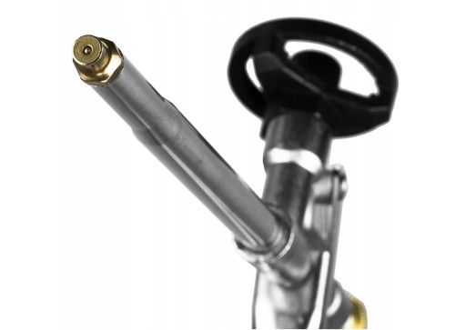 - Przykręć mocno gwint puszki do gniazda pistoletu. Naciśnij spust, a następnie reguluj strumień piany za pomocą śruby regulacyjnej znajdującej się z tyłu pistoletu.