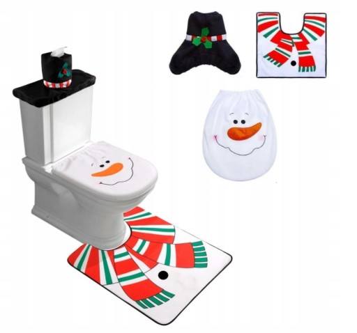 ZESTAW ŚWIĄTECZNY WC BAŁWAN ŁAZIENKOWY DYWANIK POKROWIEC NA DESKĘ 3w1