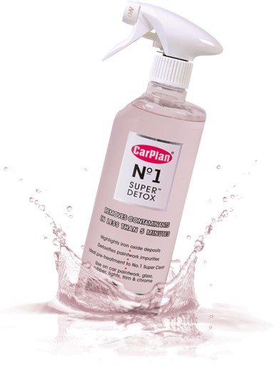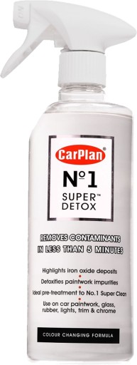 CarPlan No1 Super Detox to zaawansowany preparat do usuwania metalicznych zanieczyszczeń z karoserii samochodu, dostarczany w wygodnym atomizerze o pojemności 600ml.