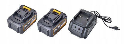 ✅ W zestawie załączone są dwa akumulatory litowo-jonowe o napięciu 20v o dużej wydajności prądowej i pojemności łącznej 3.0 Ah + ładowarka