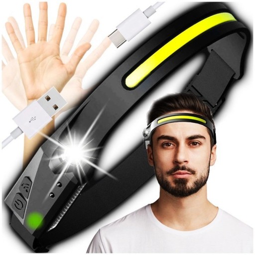 LATARKA LAMPKA NA CZOŁO GŁOWE CZOŁOWA COB + XPE 350LMN + CZUJNIK 5 TRYBÓW