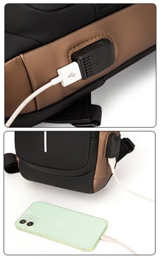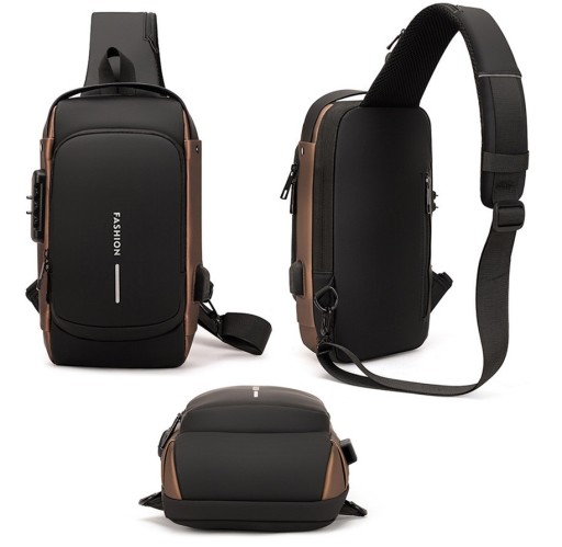 Plecak miejski jednoramienny z systemem antykradzieżowym, oraz portem USB