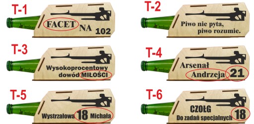 - Imię podaj w wersji odmienionej (Michałowi, Michała), jeśli wzór przewiduje liczbę lat i ma ona znaleźć się na czołgu to również ją napisz w wiadomości.