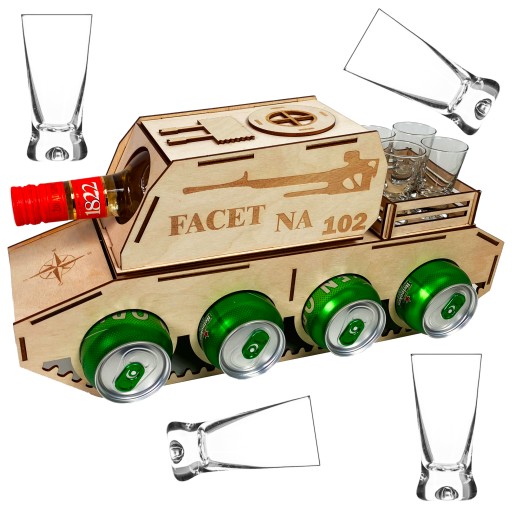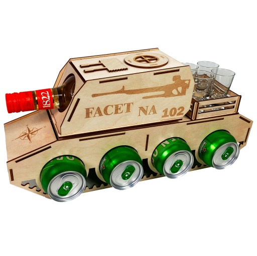 W zestawie nie ma alkoholu. Przedmiotem oferty jest wyłącznie czołg wykonany z twardej sklejki brzozowej 3mm