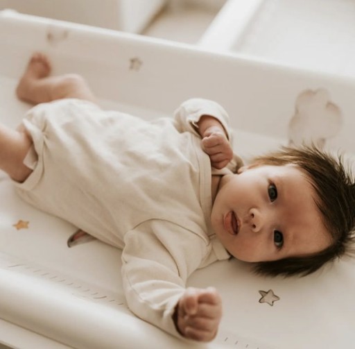 - Jego boki są specjalnie wyprofilowane, aby zabezpieczyć maluszka przed zsunięciem się z przewijaka.