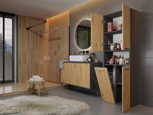 ПОЛКА ДЛЯ ШКАФА ДЛЯ ВАННОЙ NEL DK 1K АНТРАЦИТ / СТОП ДУБА ARTISAN