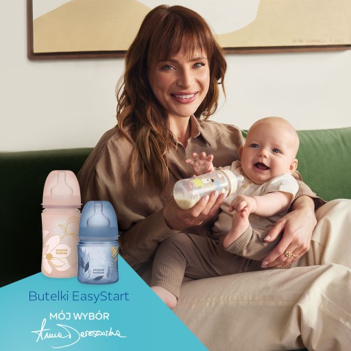 Butelki EasyStart to po prostu łatwy start w karmieniu butelką. Smoczek został wykonany z miękkiego i hipoalergicznego silikonu, dzięki czemu jest bardzo wytrzymały, nie odkształca się, nie wysycha i nie odbarwia. Jest bezzapachowy i bezsmakowy, co ułatwia akceptację butelki przez dziecko, a jego kształt przypomina pierś mamy, umożliwiając karmienie naprzemienne – karmienie piersią i butelką. Aż 90% położnych poleca smoczek do butelki EasyStart.*