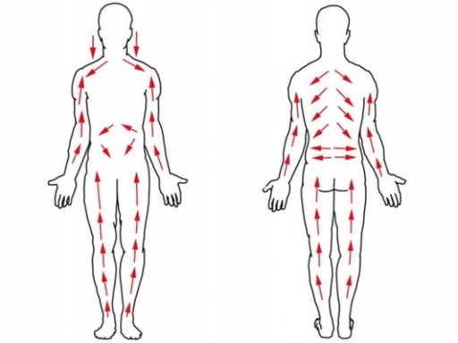 ✅ Obrysuj każdy obszar 2 – 10 razy. Ucisk powinien być dość mocny i energiczny, ruchy długie, płynne i rytmiczne. Krótsze i szybsze ruchy można zastosować na mniejszych obszarach takich jak zgięcia i stawy.
