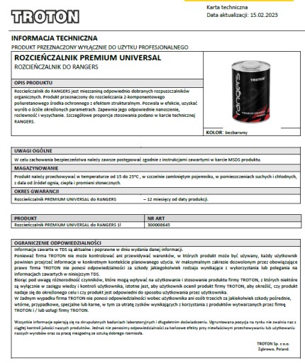 Rozcieńczalnik do powłoki ochronnej poliuretanowej RANGERS