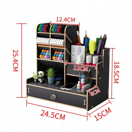 Warstwowy projekt przechowywania: rozmiar organizatora biurka to 25 * 15* 25 cm.Pen holder desk 6 skośnych przegródek, 4 płaskie dolne przegródki, 1 wysuwana szuflada, wiele przegródek Zapewnia wystarczająco dużo miejsca na różne małe przedmioty, aby zorganizować swoje rzeczy.