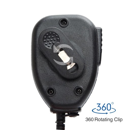 Gruszka jest wyposażona w obrotowy klips pozwalający dostosować zapięcie do własnych preferencji. Mikrofonogłośnik wygodnie przymocujesz do munduru, pasa, kamizelki i innych części oporządzenia.
