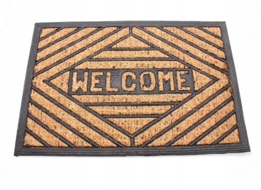 Wycieraczka do butów pod drzwi, wykonana z twardej gumy jako podłoże i włókna kokosowego, jako wierzchnia część.