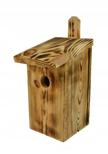 - Budka w 100% wykonana z naturalnej sosny, impregnowana na zewnątrz poprzez opalanie. Środek budki nie jest opalony, aby zachować jak najwięcej naturalności.
