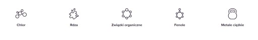 Usuwa z wody wodociągowej wszelkie zanieczyszczenia, w tym m.in.: chlor, związki organiczne, metale ciężkie, fenol, rdzę.
