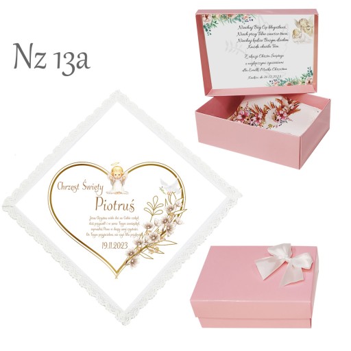 Zapraszamy do zapoznania się z naszym wyjątkowym pudełkiem na szatkę, które jest nie tylko praktyczne, ale również stanowi elegancki element pamiątki chrztu. To doskonały sposób na przechowywanie i ochronę delikatnej szatki dla Waszego małego skarbu.