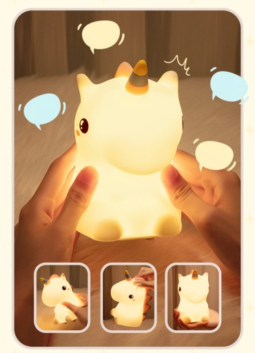 Delikatne światło rzucane przez jednorożca stworzy w pomieszczeniu przytulną atmosferę i ułatwi zasypianie.