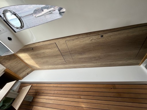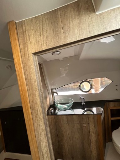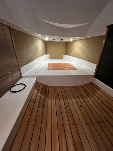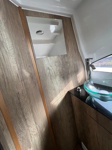 Całość uzupełnia iluminator, prysznic, toaleta morska i podłoga Iroko.