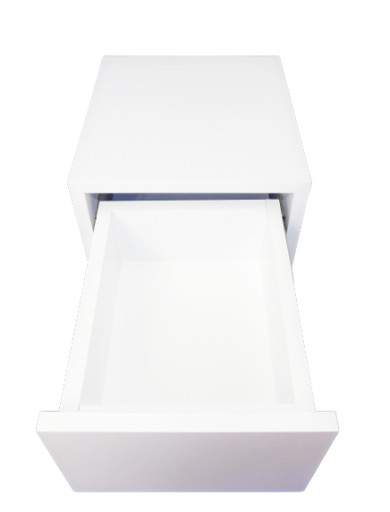 Szafka wykonana jest z trwałej płyty laminowanej o grubości 18 mm. Płyta ta charakteryzuje się trwałością i wytrzymałością.Szafka jest wykonana z grubszej płyty co czyni szafkę bardziej trwałą i stabilniejszą. Matowe wykończenie ułatwia zachowania mebla w czystości. Szafka jest oklejona PCV o grubości 0,8. Szuflady zostały wyposażone w prowadnice znanej firmy na rynku stolarskim GTV kulkowe pełny wysuw , cieszących się dobrą opinią . Szuflada otwierają się do samego końca co ułatwia nam łatwy dostęp do rzeczy schowanych w szufladzie. Z tyły zamontowane są kątowniki metalowe , które są dopiero widoczne po wyciągnięciu szuflady dlatego idealnie przylega do ściany.