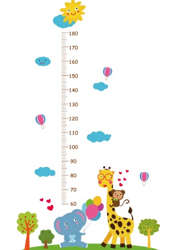 Matowa naklejka ścienna z miarką to nie tylko praktyczne rozwiązanie, ale też świetny sposób na upiększenie dziecięcego pokoju. Znajdująca się w arkuszu miarka wzrostu z zakresem od 60 cm do 180 cm wystarczy na długie lata!