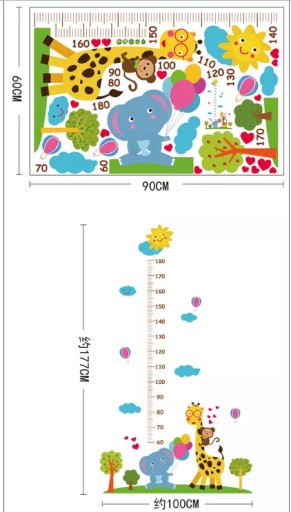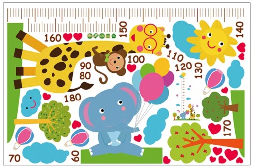 MIARKA WZROSTU NAKLEJKA NA ŚCIANĘ ZWIERZĄTKA 180cm