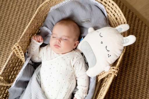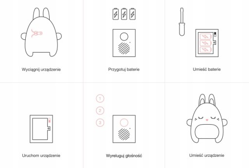 Maskotkę można prać w pralce. Przed praniem należy wyjąć urządzenie emitujące szum. Do pełnego działania szumiącej zabawki, potrzebne są trzy baterie typu AAA.