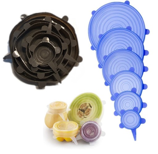 POKRYWKI SILIKONOWE UNIWERSALNE DO ŻYWNOŚCI 6 SZT