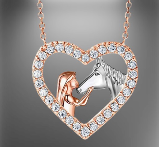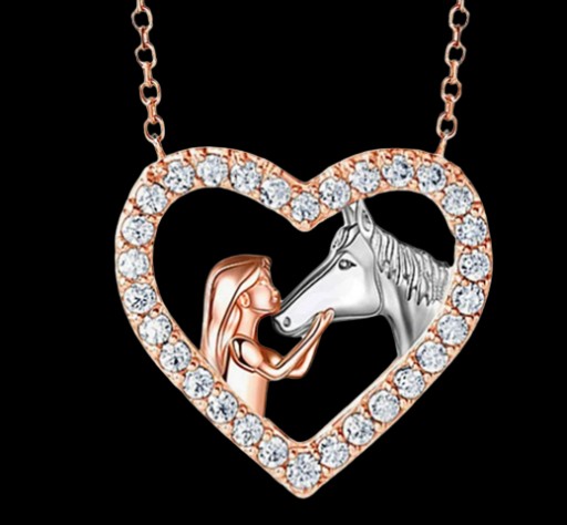 Детское ожерелье Лошадь Лошадь в сердце Сердце Золото Розовый Милый Красивый