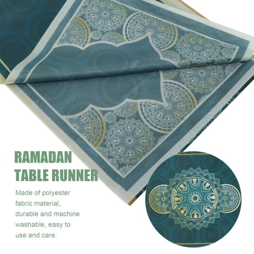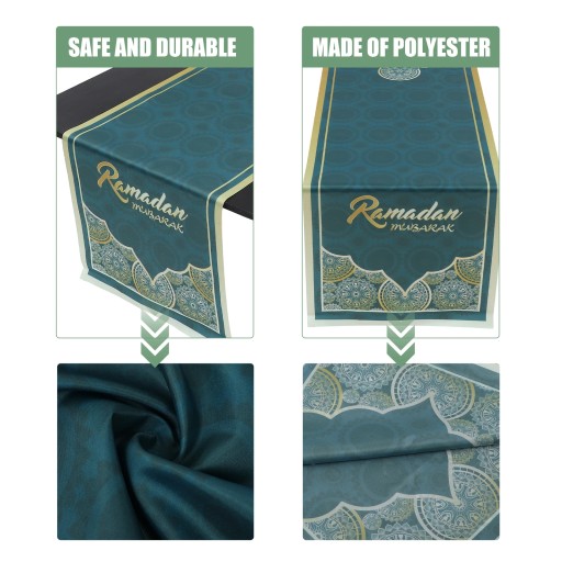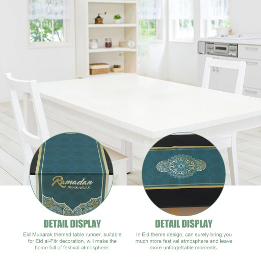 Podczas festiwalu Eid Mubarak użyj tego bieżnika, aby Twój dom był pełen ciepłej atmosfery. Wykonany z tkaniny poliestrowej, trwały i można go prać w pralce, łatwy w użyciu i pielęgnacji. Idealny dodatek do dekoracji nakrycia stołu, doskonale ozdobi Twój stół na imprezę Eid Mubarak.
