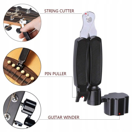 Narzędzie do konserwacji gitary 3 w 1: jako nawijak do strun, przecinak do strun i ściągacz do kręgli 1-częściowy jednoręczny kapodaster do gitary