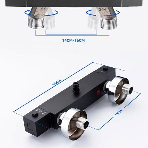 - Instalacja orurowania: musi być podłączona do ciepłej wody po lewej stronie mieszacza termostatycznego i zimnej wody po prawej stronie, w przeciwnym razie orurowanie jest odwrócone co spowoduje brak wody wydostającej się z mieszacza termostatycznego. (W obliczu prysznica rura wlotowa jest pozostawiona gorąca i prawa zimna).