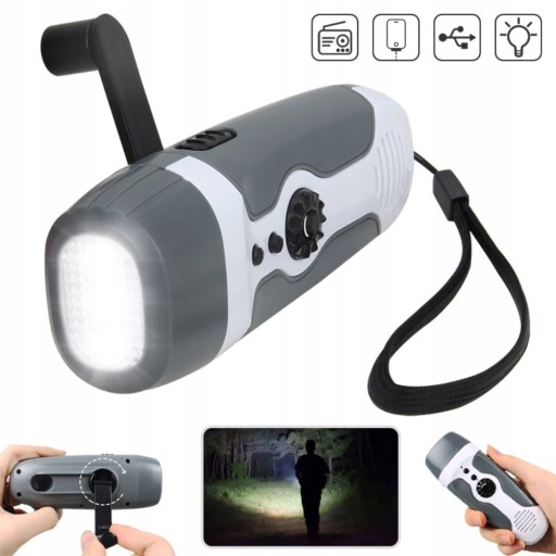 Funkcja: radio FM, alarm, ładowanie telefonu komórkowego, zewnętrzne zasilanie USB do ładowania latarki