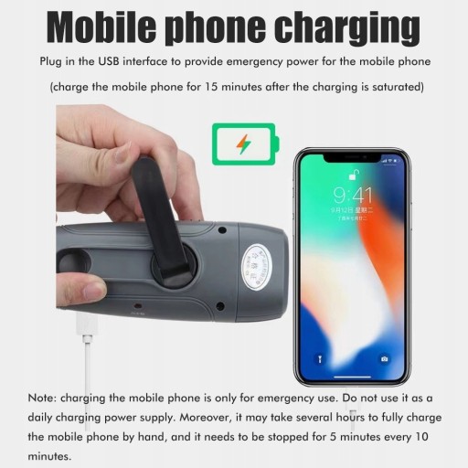 3. 2. Ładowanie korbą ręczną, bez konieczności wymiany baterii.