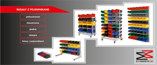 - regały z pojemnikami