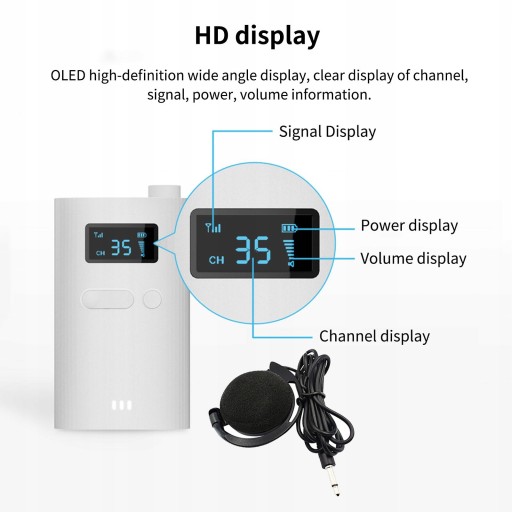 [Wyświetlacz]: Bezprzewodowy przewodnik po systemie transmisji dźwięku głosowego, szerokokątny wyświetlacz OLED, wyraźnie wyświetla kanały, sygnały, moc, informacje o głośności itp.