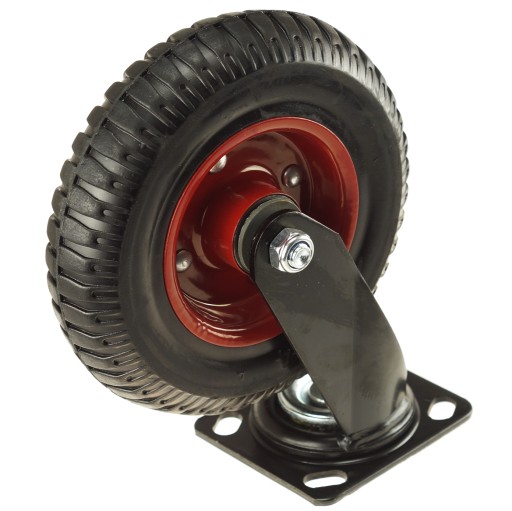 - Koło zostało wyposażone w dodatkowe łożysko obrotowe przez co skręca pozwalając na manewrowanie wózkiem