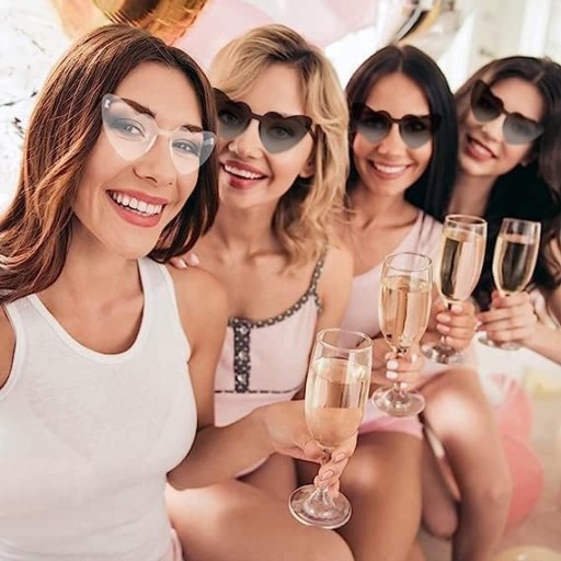 - Okulary przeciwsłoneczne w kształcie serca – Celem naszych okularów przeciwsłonecznych dla panny młodej na wieczory panieńskie jest świętowanie i nadanie wieczorowi weselu lub urodzinom nieodpartej i zabawnej atmosfery. Spraw, aby Ty i Twój zespół przyjaciół wyglądały piękniej i bardziej poruszająco. Te zabawne i stylowe ślubne okulary przeciwsłoneczne są idealnym uzupełnieniem Twojej uroczystości.