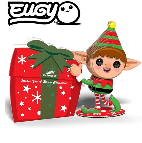 Elf Eugy jest częścią świątecznejserii układanek Eugy, w której jest Święty Mikołaj, renifer Rudolf i bałwanek. Elf Eugy ma dużą, ruchomą główkę, którą można ustawić w dowolnym kierunku. Elf ma szpiczaste uszy, charakterystyczna cecha elfów. Możesz wpisać życzenia świąteczne w pudełku, które trzyma elfik.