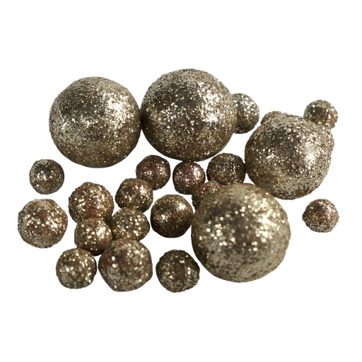 - opakowanie zawiera zestaw styropianowych kuleczek pokrytych błyszczącym brokatem