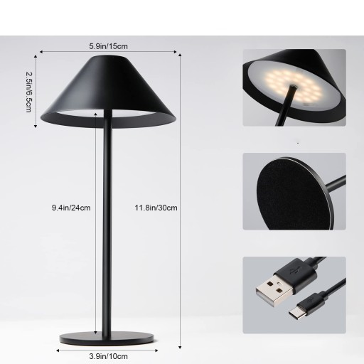 КОНИЧЕСКАЯ ЛАМПА С ЧЕРНОЙ СВЕТОДИОДНОЙ ЛАМПОЙ 3Вт 4000мАч