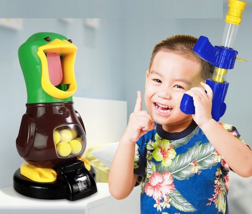 🎯 Celuj w Kaczkę: Skieruj celownik w stronę kaczki i po trafieniu piłeczką w jej wnętrze, zabawka zarejestruje punktację i wyświetli wynik na ekranie.